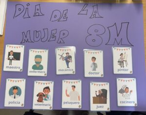 Mis peques pillaron muy rápido que su profe había hecho un cartel nada coeducativo. A partir de él, trabajamos que las profesiones no tienen sexo, sino ganas de llevarla a cabo, y en muchos casos, «combatir» con el entorno para ser aceptadas.![]()